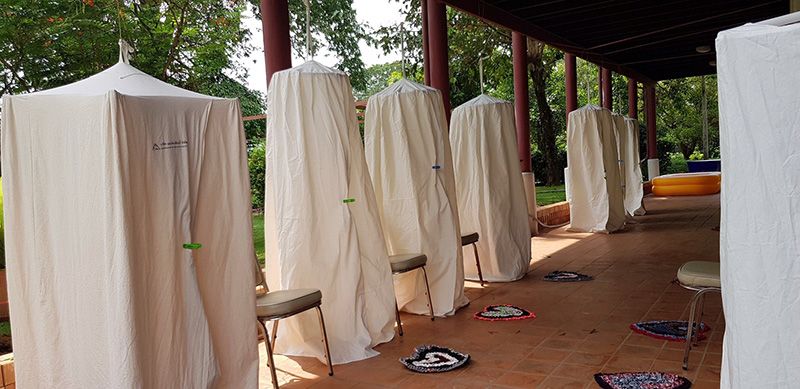 ใช่ค่ะ จริงๆ แล้วมันคือแนวคิดเดียวกันเรื่องความสมดุลของร่างกาย เป็นภูมิปัญญาดั้งเดิมของมนุษย์แต่ที่เราใช้คือการล้างพิษกายและใจด้วยความร้อนและเย็นคือ การห่มใบตองในกระบวนการความร้อน หรือในบางครั้งก็ใช้การห่มตัวด้วยทราย ในบางครั้งก็เป็นกระโจมร้อน เหมือนอย่างที่คนไทยสมัยก่อนใช้ในการอยู่ไฟ แต่ว่าทั้ง 3 ประเภทของความร้อนนี้ เราต้องดูก่อนว่าเราจะใช้แบบไหนที่จะเหมาะกับผู้เข้าร่วมโปรแกรม และดูสภาพการณ์ของฤดูด้วย ส่วนเรื่องความเย็นก็ใช้น้ำแข็งที่เรียกว่าช็อกน้ำแข็ง