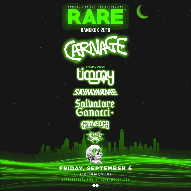 พลาดไม่ได้กับเทศกาลดนตรีสุดมัน CARNAGE & OUTPUT FESTIVAL PRESENTS RARE BANGKOK 2019วันศุกร์ที่ 6กันยายน 2562 ณ Hall 105 ไบเทค บางนา บัตรมีจำหน่ายแล้ววันนี้ ทาง http://www.Ticketmelon.com**จำกัดสำหรับผู้มีอายุ 20 ปีขึ้นไปเท่านั้น ต้องแสดงบัตรประจำตัวประชาชน หรือ หนังสือเดินทางก่อนเข้างาน**