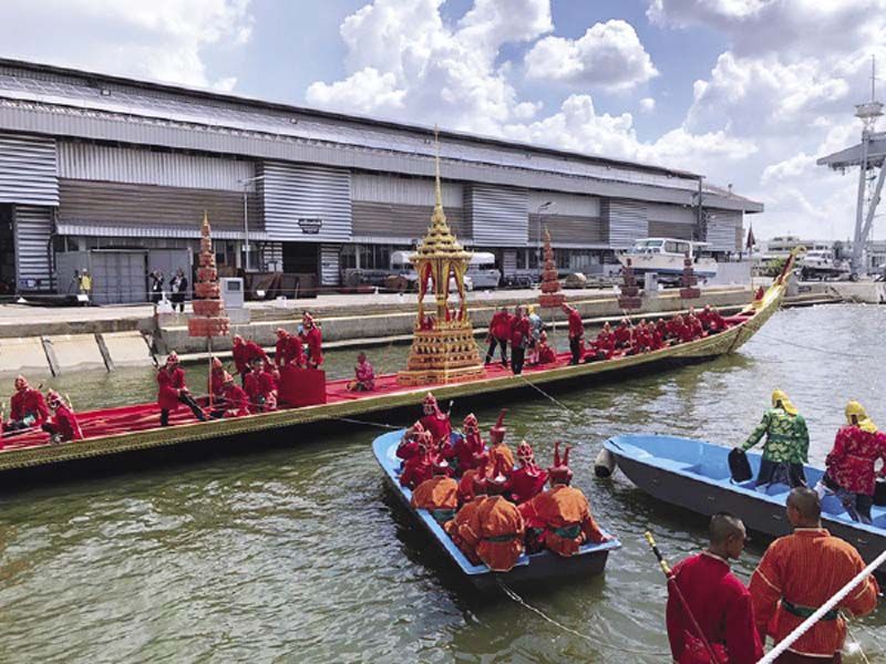 ประมวลภาพการซ้อมใหญ่เสมือนจริงขบวนอัญเชิญพระสุพรรณบัฏ ดวงพระบรมราชสมภพ และพระราชลัญจกรประจำรัชกาล, ซ้อมใหญ่เสมือนจริงขบวนที่ 3 ริ้วขบวนพยุหยาตราทางสถลมารค เมื่อวันที่ 28 เมษายน 2562 และวันที่ 30 เมษายน 2562ซ้อมใหญ่ฝีพายเรือ อัญเชิญเรือพระที่นั่งสุพรรณหงส์ ไปจอดท่าราชวรดิฐ เพื่อใช้ในการเสด็จพระราชดำเนิน เลียบพระนคร โดยขบวนพยุหยาตราทางชลมารคในการพระราชพิธีบรมราชาภิเษก