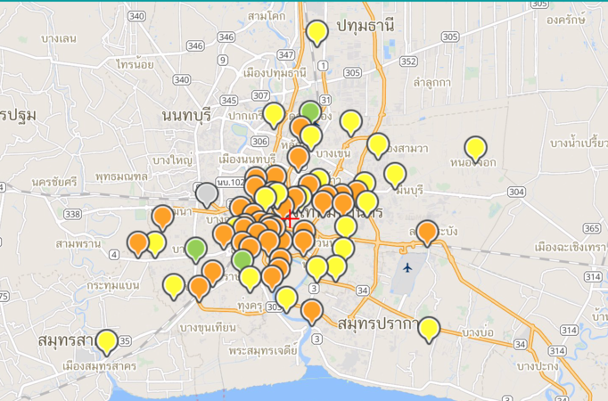 The air quality index was orange in more than 30 zones including Sathorn, the business district of Bangkok, which had an air quality index (AQI) of 147, and Charoen Krung Road with an AQI of 170.