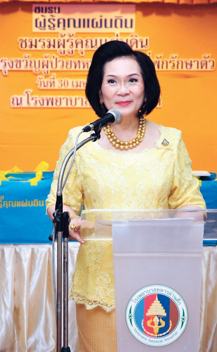 คุณหญิงปัทมา ลีสวัสดิ์ตระกูล ประธานชมรม ผู้รู้คุณแผ่นดิน กล่าวเปิดงาน