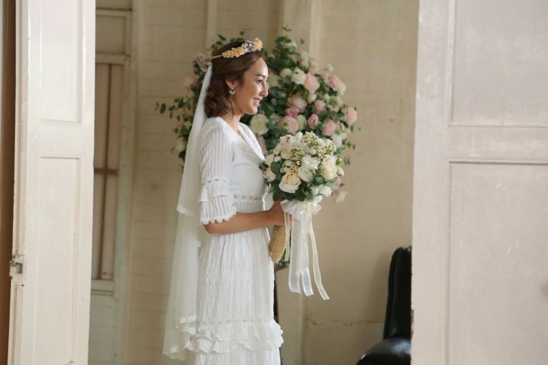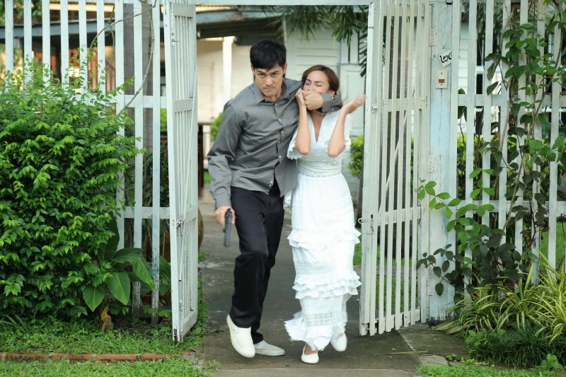 เบื้องหลังการถ่ายทำฉากหวานๆ น่ารักฉากนี้ ผู้กำกับ บุญธร กิติพัฒฑากรณ์ซักซ้อมคิวกับทุกคนอยู่หลายรอบ เนื่องจากมุมที่ถ่ายทำนั้นค่อนข้างแคบ รวมถึงมีนักแสดงเข้าฉากกันหลายคน จำเป็นต้องมาร์คจุดยืนของแต่ละคนให้ชัดเจน เพื่อไม่ให้มีใครหลุดเฟรมภาพได้ เพราะเป็นฉากที่เต็มไปด้วยความสุข สีหน้าของนักแสดงแต่ละคนจึงมีแต่รอยยิ้ม โดยเฉพาะ พระเอกหนุ่ม เข้ม ที่วันนี้มาในชุดเจ้าบ่าวอย่างหล่อ ซึ่งพอเข้าฉากแล้ว ทำเอาสาวแท้สาวเทียมในกองละคร ถึงกับเคลิ้ม ด้าน นาว ก็แสดงความเขินออกมาได้อย่างน่ารักกำลังเหมาะ จนกระทั่งถึงเวลาสุดพีค เมื่อ แอมป์ เข้ามา ซึ่งผู้กำกับ อยากได้ภาพที่ธนูแสดงความแค้นออกมาชัดเจน แอมป์ ก็สามารถสื่อสารออกมาได้ผ่านแววตา ใบหน้า ท่าทางจนดูน่ากลัวสุดๆ