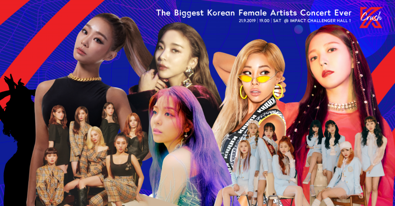 เตรียมพบกับความฮอตสุดร้อนแรงที่ท้าทายทุกโสตประสาทของแฟนคลับชาวไทย กับงานคอนเสิร์ตใหญ่ K CRUSH 2019 ครั้งแรกที่ประเทศไทยจะได้ต้อนรับเกิร์ลกรุ๊ป ศิลปินหญิงเดียว และดีว่าตัวแม่กว่าสามสิบชีวิต โดยผู้จัดอย่าง9NA สร้างปรากฏการณ์นี้บนเวทีเดียวเท่านั้นที่ อิมแพค ชาเลนเจอร์ฮอลล์1 เมืองทองธานี วันเสาร์ที่ 21 กันยายน นี้เวลา 19:00 น. งานนี้รับรองมาครบแบบจัดเต็ม ไม่ต้องบินไปไกลถึงเกาหลีเลยทีเดียว