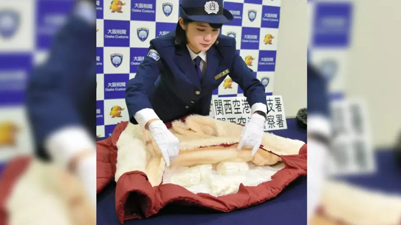 An X-ray scan turned up 14 small bags of cocaine in the coat weighing a combined 3.2 kilograms, which authorities said had a street value of 65.3 million yen (Bt18.6 million).