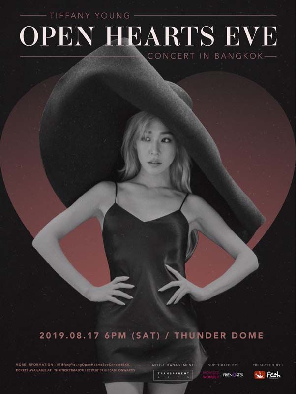16 สิงหาคม 2562 อากาศประเทศไทยร้อนแรงขึ้นอีกเท่าตัว เมื่อดีว่าสาว ‘ทิฟฟานี่ ยัง’ (Tiffany Young) ไอดอลสาวจาก ทรานส์พาเรนท์ อาร์ตส (Transparent Arts) ประเทศสหรัฐอเมริกา ได้เดินทางมาถึงประเทศไทย เตรียมเสิร์ฟความฟินให้กับแฟนชาวไทยในงาน “ทิฟฟานี่ ยัง <โอเพ่น ฮาร์ทส อีฟ> คอนเสิร์ต อิน แบงคอก” (TIFFANY YOUNG CONCERT IN BANGKOK) ที่จะมีขึ้นในวันเสาร์ที่ 17 สิงหาคม 2562 ที่จะถึงนี้แล้ว ณ ธันเดอร์โดม เมืองทองธานี โดยผู้จัดไทยโพรไฟล์เฉียบ บริษัท เฟโอห์ จำกัด (Feoh Co.,Ltd.)
