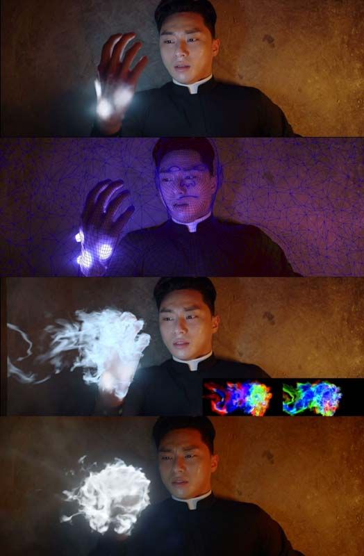 และล่าสุด Dexter Studios นำทีมโดย ซอ บยองชอล ซึ่งนั่งแท่นรับหน้าที่ในการสร้างสรรค์ความแฟนตาซีทั้งหมดใน The Divine Fury มือนรกพระเจ้าคลั่ง โดยเริ่มตั้งแต่ “มือนรก” ของ “พัค ซอจุน” ที่ใช้วิธีการถ่ายแบบติดหลอดไฟ LED ไว้ที่มือ ซึ่งเป็นเทคนิคที่ใช้ในเรื่อง The Divine Fury เป็นครั้งแรก เพื่อสร้างความสมจริงที่สุดตั้งแต่ขั้นตอนการถ่ายทำ