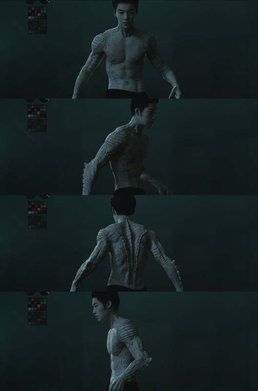 หรือในส่วนของ นักบวชปีศาจ จีชิน รับบทโดย อู โดฮวาน ที่ต้องถ่ายทอดพลังปีศาจผ่านการแปลงร่างตัวเองเป็นอสุรกาย โดยทีมงานแต่งหน้าเทคนิคพิเศษ นำทีมโดย พี แดซอง ต้องใช้จระเข้เผือกและงูสายพันธุ์ต่างๆ มาเป็นต้นแบบ และจับนักแสดงมาแสกน 3 มิติเพื่อใช้ในการออกแบบ ทีมงานลองผิดลองถูกอยู่นานนับเดือนกว่าจะออกมาเป็นรูปเป็นร่างและกลายเป็นผิวหนังสังเคราะห์ให้นักแสดงสวมทับ ซึ่งต้องใช้เวลาในการแต่งกว่า 7 ชั่วโมงในทุกๆ วันที่ถ่ายทำ