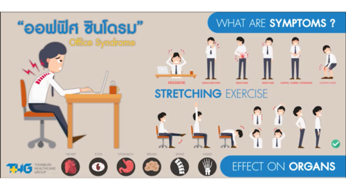Many people spend 8-10 hours in front of computer screens, resulting in stiff muscles and body aching, especially on their shoulders, neck and upper arm. We have good solutions to tackle this problem. With me today are Dr Thanathip and Archan Surasak, who is a physical therapist.