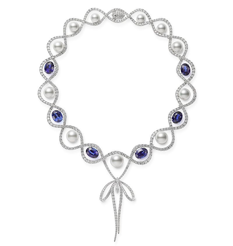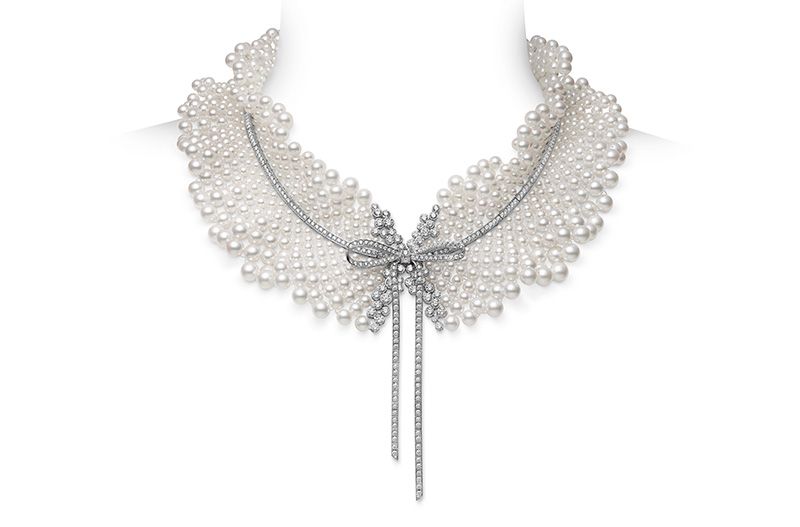 คอลเลคชั่นมาสเตอร์พีซชุดนี้ ยังมีสร้อยคออีก 3 เส้นที่ได้แรงบันดาลใจจากริบบิ้นที่นิยมกันทั่วโลกและไม่มีวันตกเทรนด์ โดยเส้นแรกนำไข่มุกอะโกย่ามาเรียงร้อยเป็นรูปปกคอเสื้อที่ดูพลิ้วไหว ตกแต่งด้วยเพชรที่เรียงเป็นเส้นริบบิ้นที่ทำจากทองคำขาวแล้วนำมาผูกเป็นโบตรงกลาง สร้อยคออีกเส้นที่งดงามไม่แพ้กัน นำไข่มุกเซาธ์ซีส์สีขาว 11 เม็ดมาประดับสลับกับพลอยสีน้ำเงิน 6 เม็ดบนตัวเรือนทองคำขาวที่ร้อยไขว้กันไปมาและนำมาผูกเป็นโบเล็กๆ ตรงกลาง ส่วนแบบสุดท้ายเป็นสร้อยคอไข่มุกอะโกย่า 2 เส้น ที่เกี่ยวรัดกันไว้ด้วยริบบิ้นเล็กๆ ทำด้วยพิงค์โกลด์ประดับเพชร ดูคลาสสิกไม่น้อย