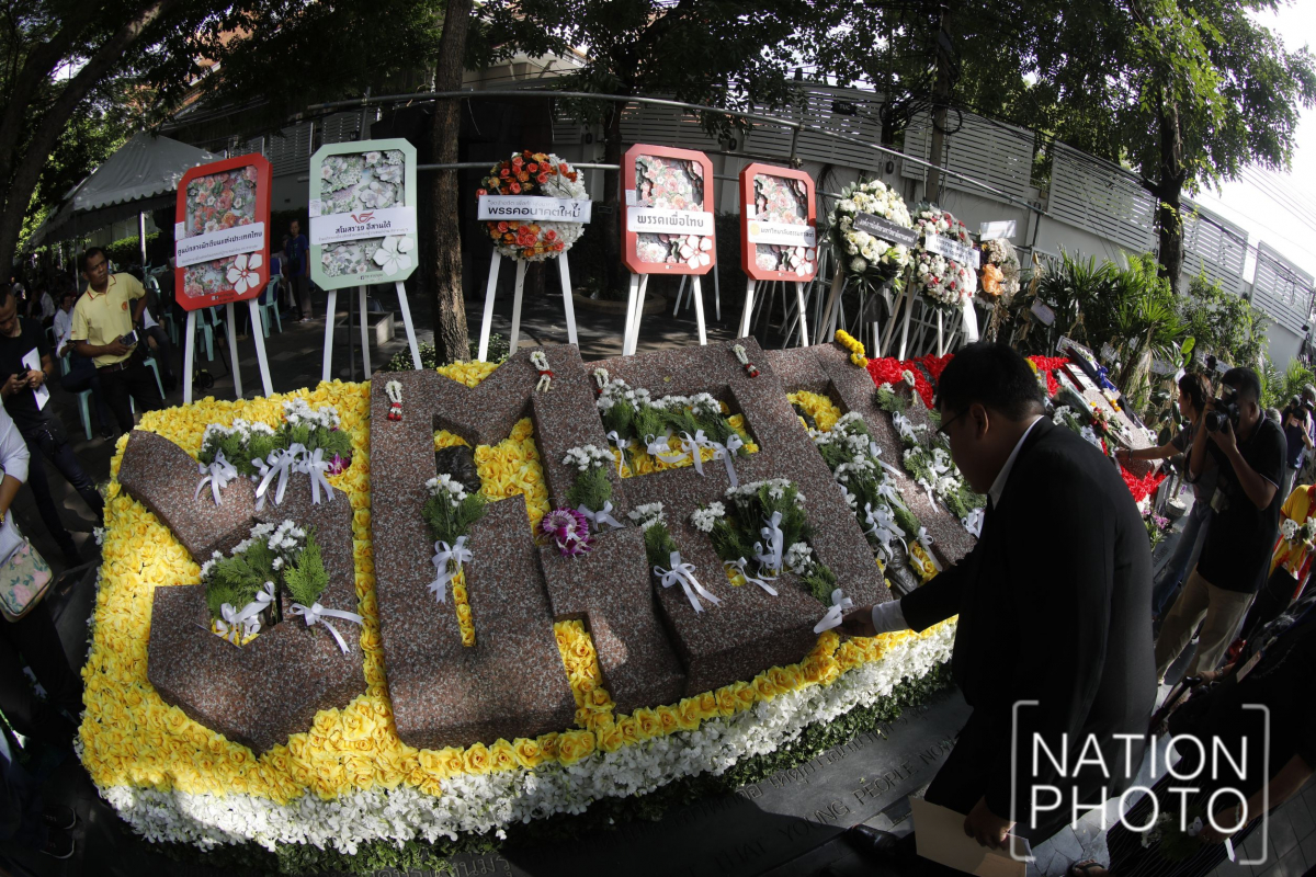 This year’s event saw relatives, representatives of political parties and various organisations make merit and lay wreaths and flowers at Thammasat University’s Tha Pra Chan campus near the October 6 sculpture.