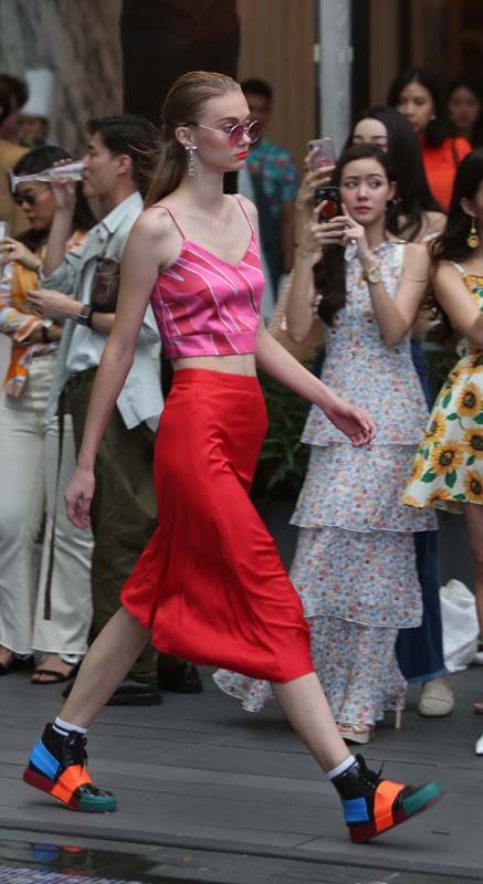 ภายในงานเนรมิตริมสระน้ำให้เป็นรันเวย์กลางแจ้งสุดชิค เพิ่มดีกรีความร้อนแรงด้วยแฟชั่นโชว์ 3 คอนเซ็ปต์หลัก เริ่มด้วย Casual & Streetที่สร้างสรรค์ไอเดียการแต่งกาย โดยมิกซ์แอนด์แมทช์ชุดเดรสสั้นสีสันสดใสกับรองเท้าคู่โปรดอย่าง Melissa Lance รองเท้าส้นเตี้ยหุ้มส้นที่เพิ่มดีเทลด้วยสีสันตัดขอบ สามารถแมทช์เข้าได้กับทุกลุค หรือจะย้อนเวลากลับไปในยุคแห่งสีสันและความสดใสกับลุค ยุค 90ที่ผสมผสานความฉูดฉาดเข้ากับเทรนด์ที่กำลังมาแรง นำเรื่องราวเก่ามาเล่าใหม่ จับคู่เสื้อและกางเกงขาจัมพ์คอมพลีทลุคด้วย Melissa Crew สนีกเกอร์หุ้มข้อทรงสูงที่คงดีกรีความเป็นสตรีทโดยเพิ่มลูกเล่นของสีสันที่แตกต่าง มาพร้อมดีไซน์ที่เน้นความเก๋ไก๋คล่องตัว ปิดท้ายกับลุค Sport Swimsuitsอัพเดทเทรนด์รักสุขภาพ ให้สาวๆ อวดหุ่นสวยในชุดว่ายน้ำตัวเก่งพร้อมเดินชิลริมหาดกับ Melissa Papete + Rider
