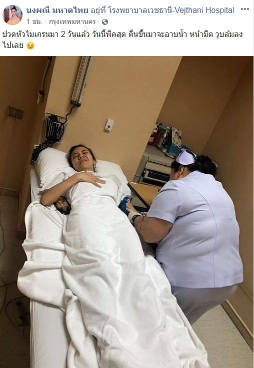 ได้ชื่อว่าเป็นนักร้องลูกทุ่งสาวที่งานเยอะที่สุดอีกคนหนึ่งของวงการ เมื่อพูดถึง “จ๊ะ อาร์สยาม” เพราะนอกจากเดินสายตะลุยทัวร์คอนเสิร์ตทั่วประเทศแล้ว ยังรับหน้าที่คอมเมนเตเตอร์ในรายการ “เสียงสวรรค์รางวัลชีวิต” ช่อง 8 โหมงานหนักขนาดนี้ล่าสุดเลยทำให้เจ้าตัวถึงกับหน้ามืดและวูบล้มลงไป ก่อนถูกนำตัวส่งไปรักษายังรพ.เวชธานี โดยสาวจ๊ะได้โพสต์ภาพลงเฟซบุ๊ก ขณะพักรักษาตัวอยู่โรงพยาบาล พร้อมระบุถึงอาการครั้งนี้ว่า “ปวดหัวไมเกรนมา 2 วันแล้ว วันนี้พีคสุด ตื่นขึ้นมาจะอาบน้ำ หน้ามืด วูบล้มลงไปเลย”