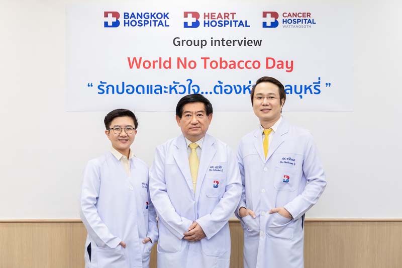 นายแพทย์เอกชัย เสถียรพิทยากุล อายุรแพทย์ระบบทางเดินหายใจ โรงพยาบาลกรุงเทพ กล่าวว่า จากข้อมูลขององค์การอนามัยโลกเมื่อปี 2018 ระบุไว้ว่า ปัจจุบันมีผู้สูบบุหรี่ทั่วโลกประมาณ 1,100 ล้านคน และมีผู้เสียชีวิตจากการสูบบุหรี่มากถึงปีละไม่ต่ำกว่า 7 ล้านคนทั่วโลก ประมาณ 890,000 คน เสียชีวิตจากการสูดดมควันบุหรี่มือสอง ทั้งนี้ นอกจากโรคมะเร็งปอดและโรคระบบทางเดินหายใจที่เป็นสาเหตุส่วนใหญ่ของการเสียชีวิตในผู้ที่สูบบุหรี่ ยังมีผู้เสียชีวิตอีกประมาณ 3 ล้านคนที่เสียชีวิตจากสาเหตุที่เกี่ยวข้องกับโรคหัวใจและหลอดเลือด อาการหัวใจวายและโรคหลอดเลือดสมอง ดังนั้น การไม่ยุ่งเกี่ยวกับบุหรี่คือหนทางของการดูแลสุขภาพที่ดีในระยะยาว เพราะควันบุหรี่มีสารเคมีมากกว่า 7,000 ชนิด ที่เป็นผลเสียต่อร่างกายแทบทั้งสิ้น การสูบบุหรี่ไม่เป็นผลดีต่อร่างกาย โดยเฉพาะปอดและหัวใจ เป็นอวัยวะที่ได้รับผลกระทบโดยตรง เมื่อสูบบุหรี่ไปนานๆ ปอดจะถูกทำลายไปเรื่อยๆ ส่งผลให้เป็นโรคทางเดินหายใจอุดกั้นเรื้อรัง โรคถุงลมโป่งพอง และร้ายแรงจนเป็นโรคมะเร็งปอดได้ในที่สุด พิษของบุหรี่ยังเพิ่มโอกาสเป็นมะเร็งที่ปอด หลอดลม กระเพาะปัสสาวะ ตับอ่อน อีกทั้งสารพิษในควันบุหรี่ ทำให้หลอดเลือดหัวใจตีบลง อาจส่งผลให้เกิดโรคหลอดเลือดหัวใจตีบหรือหัวใจขาดเลือดได้ เพราะฉะนั้นการเลิกสูบบุหรี่และไม่ยุ่งกับบุหรี่ตั้งแต่แรกคือ การดูแลปอดและหัวใจให้แข็งแรง ห่างไกลจากโรคร้ายที่มาจากพิษภัยของบุหรี่