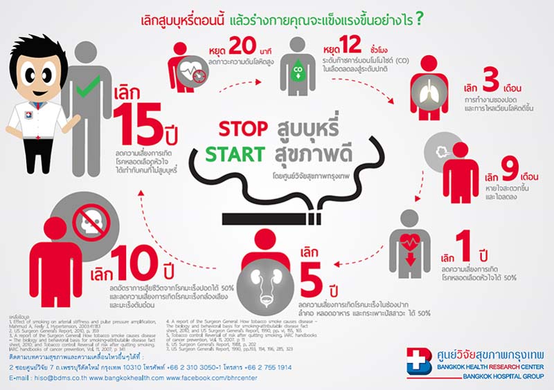 การเลิกสูบบุหรี่นั้นทำได้ไม่ยาก ขอเพียงใจที่มุ่งมั่น เพราะเพียงแค่เลิกสูบบุหรี่เพียงไม่กี่ชั่วโมง อัตราการเต้นของหัวใจและความดันเลือดจะลดลง สารพิษในร่างกายน้อยลงเช่นกัน ที่สำคัญเด็กที่พ่อแม่สูบบุหรี่จะมีความเสี่ยงต่อการพัฒนาของหินปูนในหลอดเลือดแดงหัวใจมากกว่า 4 เท่า และมีความเสี่ยงในการเป็นโรคหลอดเลือดแดงตีบตันมากกว่า 2 เท่า เมื่อเทียบกับเด็กที่พ่อแม่ไม่สูบบุหรี่ โดยมีเทคนิคง่ายๆ ที่ช่วยให้เลิกบุหรี่ คือกำจัดอุปกรณ์ที่เกี่ยวกับการสูบบุหรี่ทั้งหมด อย่าเข้าใกล้คนสูบบุหรี่ เลี่ยงการดื่มเครื่องดื่มแอลกอฮอล์ จัดการความเครียดด้วยการไม่สูบบุหรี่ ช่วงแรกที่เลิกสูบบุหรี่อาจรู้สึกหงุดหงิด ให้สูดหายใจเข้าออกลึกๆ ดื่มน้ำให้มากๆ อาบน้ำให้สบายตัว ออกกำลังกายสม่ำเสมอ เพียงเท่านี้การกลับมามีสุขภาพดีก็ไม่ใช่เรื่องยากอีกต่อไป