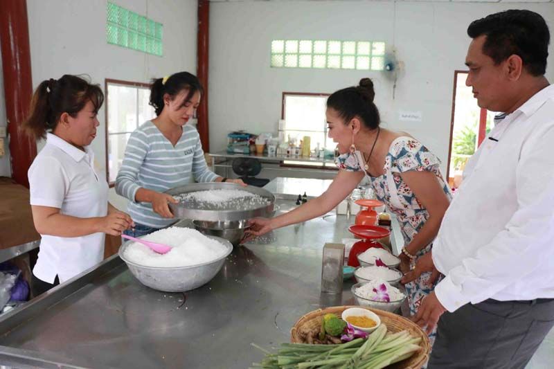 และอีกหนึ่งสถานที่เที่ยวใกล้ๆ รีสอร์ท มีถนนสายนาเกลือให้น้อยและหวันนั่งรถชมวิวเพลินๆ จนมาถึง สปาเกลือกังหันทอง ชมผลิตภัณฑ์จากเกลือที่มีมากกว่า 10 ชนิด งานนี้สองสาวชิคๆ ได้อีก ด้วยการขอลงนวดสปาเกลือ และเรียนรู้การทำเกลือสปาหลังจากหายเมื่อย ก็ได้เวลากลับเข้ารังที่ Seaman Resort พร้อมอิ่มอร่อยกับอาหารทะเลมื้อค่ำ นั่งฟังเสียงคลื่นริมชายหาดเช้าอีกวันก่อนลาเมืองเพชรบุรี ก็ต้องขอแวะ โครงการศึกษาวิจัยและพัฒนาสิ่งแวดล้อมแหลมผักเบี้ย อันเนื่องมาจากพระราชดำริ สองสาวเลยขอตัวช่วยด้วยการนั่งรถรางชมจุดต่างๆ จนมาถึงเส้นทางศึกษาธรรมชาติป่าชายเลน น้อยและหวันขอกระโดดจากรถรางมาเดินแคตวอล์กทอดน่องชมป่าชายเลน ตามหาปูแสม, ปูก้ามดาบและปลาตีน ทำเอาตื่นเต้นกันจนลืมวัย