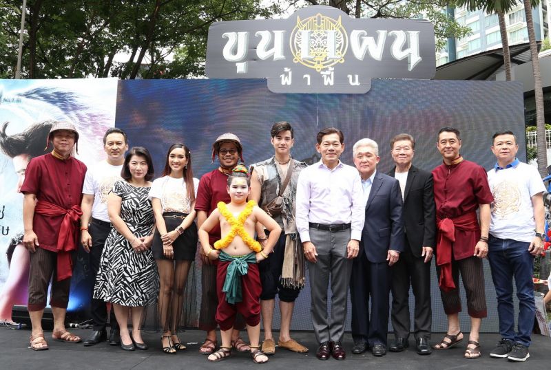 บริษัท เอ็ม พิคเจอร์ส จำกัด โดยคุณพรชัย ว่องศรีอุดพร และ บริษัท บีฮีมอธ แคปปิตอล จำกัด โดยคุณวิบูลย์ ลีรัตนขจร จัดงานเปิดตัวอีกบทบาทสุดท้าทายที่ไม่ใช่ผู้วิเศษของพระเอกหนุ่ม “มาริโอ้ เมาเร่อ” ผู้รับบท “ขุนแผน” หรือ “แก้ว” โดยควบม้าสีหมอกตั้งแต่ถนนรัชดาภิเษก เข้ามาที่ เมเจอร์ รัชโยธิน อย่างสง่าผ่าเผย และขึ้นมาดึงดาบฟ้าฟื้น บนเวที เป็นการโชว์ซีนไฮไลท์ การเปิดตัวทีเซอร์ครั้งแรกในโลกจากภาพยนตร์ฟอร์มยักษ์แห่งปี “ขุนแผน ฟ้าฟื้น” ผลงานการกำกับภาพยนตร์โดย “ก้องเกียรติ โขมสิริ” โดยมาริโอ้ให้สัมภาษณ์ถึงการมารับบท ขุนแผน พร้อมทั้งเปิดตัวกุมารทองสุดน่ารักน้อง “รถบัส-ภคพล ตัณฑ์พาณิชย์” หนุ่มน้อยที่จะมาสร้างความน่ารักและความฮาให้คนดูมีความสุข พร้อมกับการประกาศแคมเปญกิจกรรม ตามล่าหาขุนแผน ก่อนจะปิดงานด้วยการเชิญเหล่าผู้บริหารทุกภาคส่วนขึ้นถ่ายรูปรวมพร้อมกันบนเวที อาทิ คุณประวิทย์ มาลีนนท์, คุณวิชา พูลวรลักษณ์ คุณวิชา พูลวรลักษณ์ประธานเจ้าหน้าที่บริหาร บริษัท เมเจอร์ ซีนีเพล็กซ์ กรุ้ป จำกัด (มหาชน), คุณธนกร ปุลิเวคินทร์ ประธานเจ้าหน้าที่บริหาร บริษัท เอ็ม พิคเจอร์ส จำกัด, คุณนุชพัชร วงษ์สุวรรณผู้บริหาร จากบริษัท มันเวิร์ค โปรดักชั่น จำกัด, คุณฐิตาภัสร์ อิสราพรพัฒน์รองประธานเจ้าหน้าที่บริหารฝ่ายสายงานการเงินและบัญชี บริษัท เมเจอร์ ซีนีเพล็กซ์ กรุ้ป จำกัด (มหาชน), คุณอภิชาติ คงชัยรองประธานเจ้าหน้าที่บริหารฝ่ายธุรกิจโรงภาพยนตร์ บริษัท เมเจอร์ ซีนีเพล็กซ์ กรุ้ป จำกัด (มหาชน), คุณสินอนันต์ รัตนตระกูลชัย กรรมการผู้จัดการ บริษัท จีเอ็มเอ็ม มิวสิค พับลิชชิ่ง อินเตอร์เนชั่นแนล จำกัดและคุณสยามรัศมิ์ เลาหสุขเกษมกรรมการผู้จัดการบริษัท เมเจอร์ กันตนา บรอดแคสติ้ง จำกัด สถานีโทรทัศน์ M Channel ช่อง 88พร้อมกันนี้ณ ลานกิจกรรม เมเจอร์ อเวนิว รัชโยธิน (หน้าสตาร์บั๊คส์) เมื่อวันก่อนและ ได้มอบโปสเตอร์แรกของภาพยนตร์พร้อมลายเซ็นให้กับคุณวิชา พูลวรลักษณ์ อีกด้วย โดยงานนี้ “มาริโอ้” เผยความรู้สึกว่า