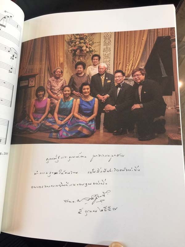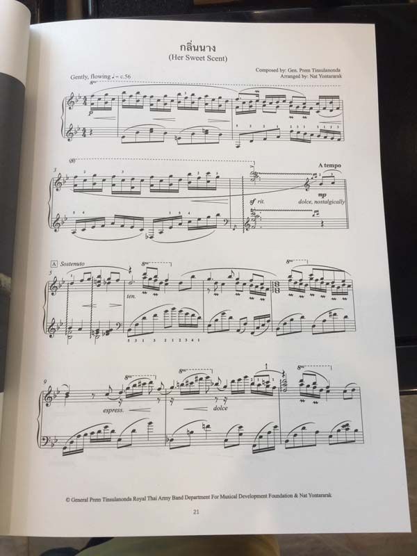 คือซีดีและหนังสือที่มีโน้ตเพลงที่เราทำจากเพลงที่เรามอบให้เป็นของขวัญวันเกิดป๋า ตอนที่ท่านครบ 8 รอบ 96 ปี ท่านมาฟังที่นี่ โดยเฉพาะหนังสือนี่สำคัญมาก เพราะมีลายมือของป๋าอยู่ด้วย แต่ที่มากกว่านั้นคือ มีภาพวาดของโดยศิลปินชื่อดังวาดประกอบบทเพลงทั้ง 10 เพลง แต่ตอนที่กำลังทำหนังสือเล่มนั้น หลังจากนั้นไม่นานพระบาทสมเด็จพระเจ้าอยู่หัว รัชกาลที่ 9 เสด็จสวรรคต พลเอกเปรมจึงบอกว่าหยุดโครงการไว้ก่อน ยังไม่ต้องทำอะไรทั้งสิ้น ให้ชะลอไว้ก่อน ดังนั้นที่คิดว่าจะมอบให้เป็นของขวัญกับท่าน ก็จึงชะลอไว้ แล้วจากนั้นก็จึงมาดำเนินการต่อหลังจากเสร็จสิ้นงานพระบรมศพส่วนความประทับใจในหนังสือคือ ท่านเขียนเรื่องเกี่ยวกับดนตรี โดยท่านเขียนด้วยลายมือมาให้ว่า ดนตรีเป็นภาษาสากล ทุกคนในโลกฟังเข้าใจ ดนตรีให้แสงสว่างสดใส ให้ความชื่นใจหรรษา นี่คือฉัน แต่ท่านเขียนให้เติมอีกว่า บ้านฉันอยู่ที่ไหน อยู่ใกล้หรือไกลฉันอยู่กับใคร อยู่กับหัวใจฉันเอง อ่านแล้วรู้สึกว่า ท่านคงเหงา เพราะฉะนั้น ในความรู้สึกที่ท่านอยู่กับตัวเองนี้ ท่านจึงมีจินตนาการ ทำให้ท่านเขียนเพลงออกมาได้มากมายเหลือเกิน ขอเน้นว่าในหนังสือที่เราทำ มีโน้ตเพลงที่เราเล่นจริงๆ อยู่ด้วย และมีซีดีด้วยครับ สำหรับผู้รักดนตรี ที่อยากเก็บอัลบั้มนี้ไว้ก็เชิญติดต่อนะครับ ของมีจำนวนจำกัด ติดต่อที่ศาลาสุทธสิริโสภา โทร.02-5418662, 080-4075231