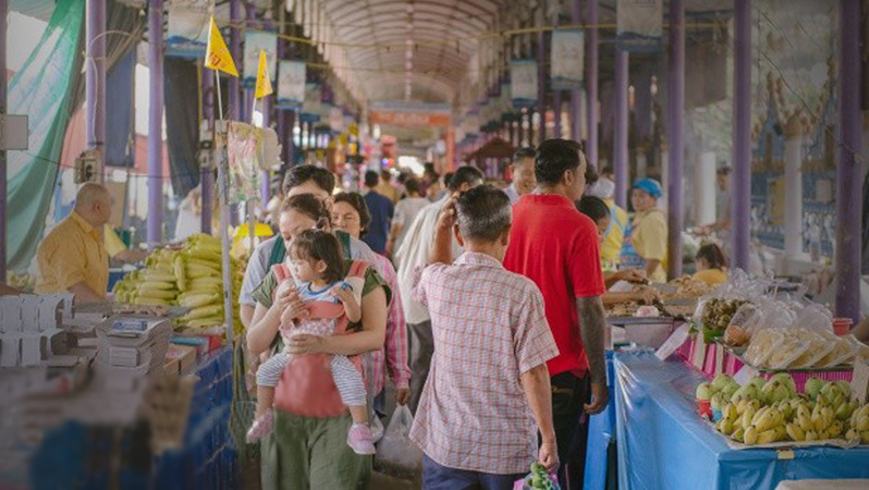 The district’s residents are mostly farmers and sell their produce at this market, including organic vegetables and fruit, snacks and beverages.