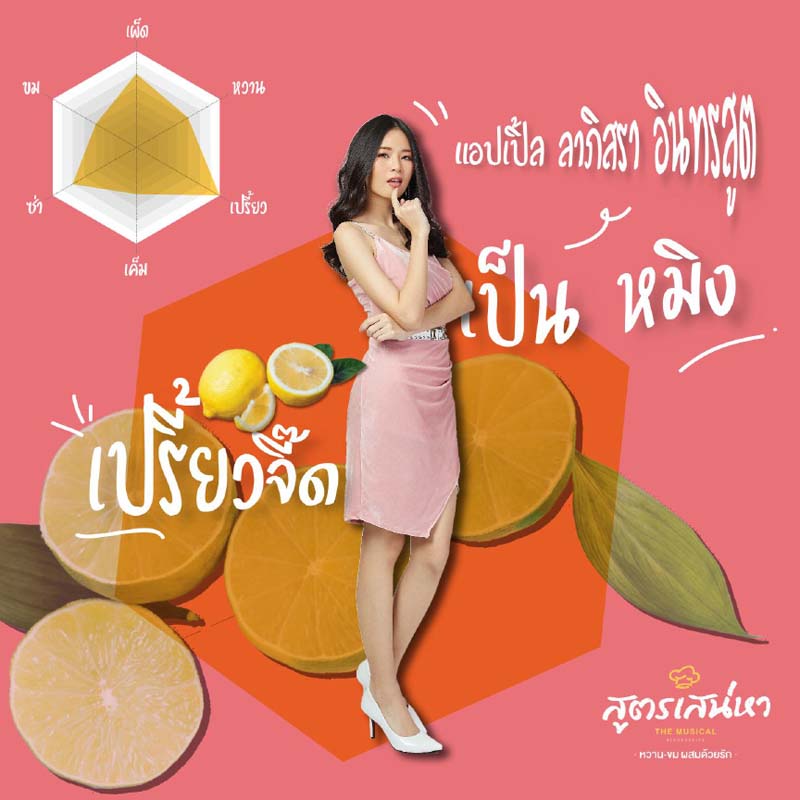 หลังจากแถลงข่าวเปิดตัวนักแสดงละครเพลงโรแมนติก-คอเมดี้แห่งปี “สูตรเสน่หา เดอะมิวสิคัล” ไปเมื่อต้นเดือนกรกฎาคมที่ผ่านมา เรียกว่ากระแสตอบรับของละครเพลงของบริษัท บี มิวสิคัล จำกัด ที่นำทีมโดย สุดาพิมพ์ โพธิภักติ ผู้อำนวยการสร้าง แรงดีไม่มีตก แฟนๆ ติดตามเพจและจองบัตรมาอย่างต่อเนื่อง งานนี้เพื่อเป็นการเรียกน้ำย่อย เราจึงขอเปิดสูตรลับรสชาติความกลมกล่อมของสูตรเสน่หาเดอะมิวสิคัลที่จะถ่ายทอดผ่านตัวละครซึ่งเปรียบเสมือนรสชาติอาหาร