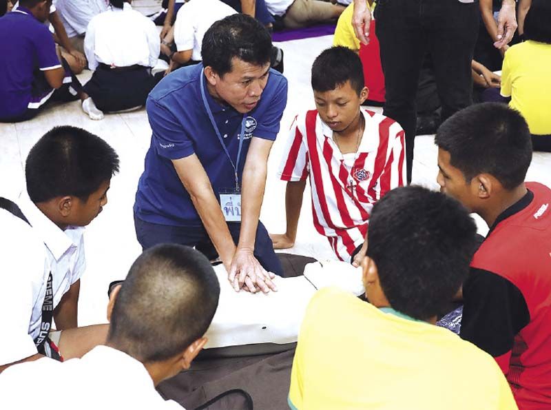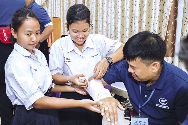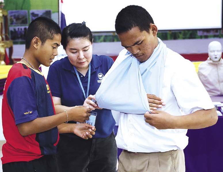 กรุงเทพประกันภัยจัดกิจกรรมส่งเสริมความปลอดภัย ห่วงใยเยาวชนให้ความรู้ด้านการปฐมพยาบาล สาธิตการทำ CPR และสาธิตการดับเพลิง ให้แก่นักเรียนโรงเรียนหนองน้ำส้มวิทยาคม จังหวัดพระนครศรีอยุธยา เพื่อเตรียมความพร้อมรับเหตุฉุกเฉิน เมื่อวันที่ 11 มิถุนายน 2562