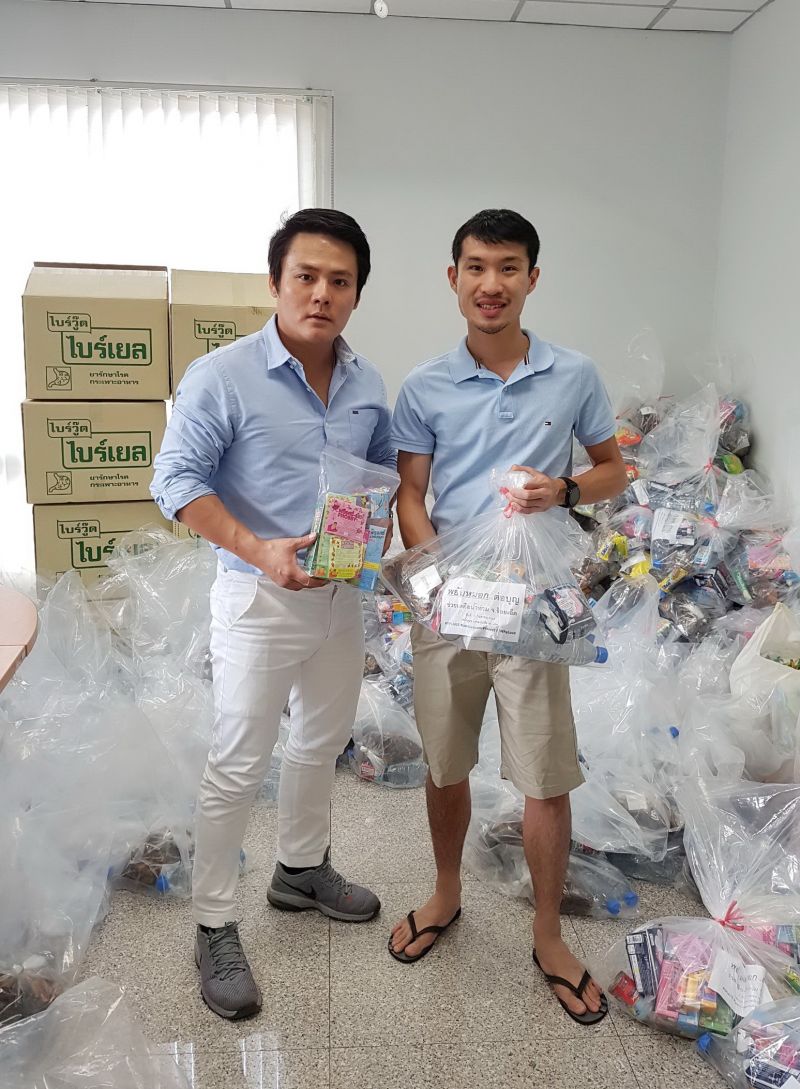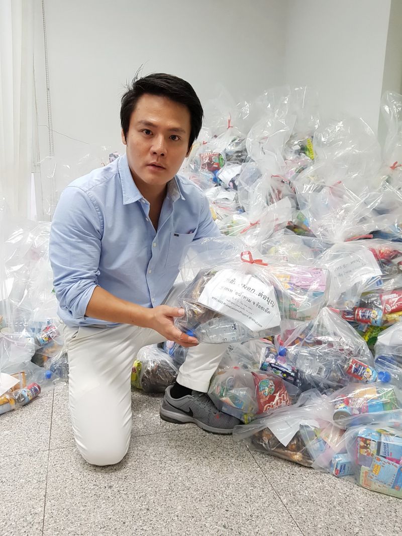 วันนี้ผมและเพื่อนๆ จึงมาช่วยกันแพ็คของ ซึ่งได้ทั้งหมดประมาณ 400 กว่าชุด โดยมี คุณเชาว์ อิงค์ธเนศ นักธุรกิจคนดัง ,คุณฐิติพงศ์ คำผุย ,คุณสหรัชกร รุ้งทาบนภา , คุณจิระเดช กิจเลิศนภา ,คุณเคียงฤทัย โคตรรุฉิน , คุณธารา เจนธนอรรถกิจ ซึ่งเป็นเหล่านักธุรกิจจิตอาสาต่างๆ รวมถึง คุณหนุ่ม-นพพล ปิตะฝ่าย อดีตนักบอลทีมชาติไทย มาร่วมด้วยช่วยกันด้วยครับ”