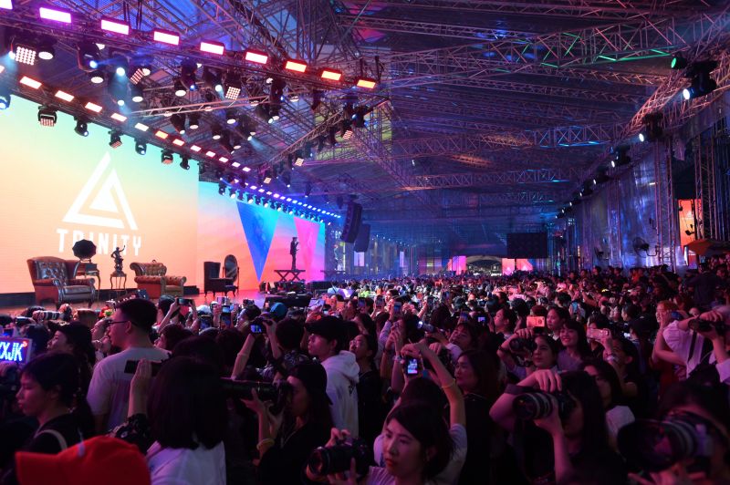 หลังแถลงข่าวเสร็จ ก็ถึงวินาทีที่ทุกคนรอคอย เสียงกรี๊ดดังสนั่นต้อนรับการเปิดตัวของทั้งสี่หนุ่มที่มาพร้อมกับการออนแอร์สดผ่านจอบริเวณแยกราชประสงค์ เล่นเอาการจราจรช่วงนั้นถึงกับเป็นอัมพาตไปทีเดียว ก่อนที่สี่หนุ่มออกมาทักทายพร้อมโชว์เพลงในอัลบั้มให้เหล่า TWILIGHTได้ฟินกันถึง 4 เพลงรวด Haters Got Nothing(เฮทเทอร์ส ก็อต น็อตติง),IOU(ไอ โอ ยู),Jazzy(แจ๊สซี่) และ Hidden Track(ฮิดเด้น แทรค) ท่ามกลางเสียงร้องตามและกรี๊ดสนั่นจากกองทัพ TWILIGHT ที่พร้อมใจกันมาร่วมซัพพอร์ตศิลปินที่เค้าชื่นชอบกันเป็นครั้งแรกจนอัดแน่นเต็มพื้นที่ เล่นเอาทุกคนทั้งตื่นเต้น ทั้งฟิน ทั้งอิ่มความสุขกับการมาร่วมเดบิวต์สเตจครั้งแรกไปพร้อมๆกันกับสี่หนุ่ม TRINITY ในเย็นวันนั้นกันไปทีเดียว