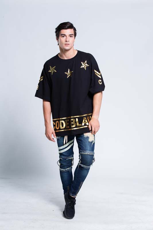 ในส่วนของเสื้อยืด จัดเต็มมาให้เลือกกันอย่างจุใจ หลากหลายสไตล์ เริ่มตั้งแต่ เสื้อกล้าม tank ไอเท็มเด็ดที่พร้อมให้หนุ่มๆได้อวดหุ่นฟิตแอนด์เฟิร์ม และกล้ามเนื้อแต่พองาม แถมยังดูแกลมด้วยลวดลายสีทอง Code Black นอกจากนี้ยังมี เสื้อทีเชิ้ต แขนสั้น basic, เสื้อ cloak, แขนยาว, เสื้อ oversize แต่ละตัวล้วนแฝงไปด้วยความโก้และกลิ่นอายของสตรีทแฟชั่น แค่จับคู่กับยีนส์เก๋ๆ สักตัว ก็คูลอย่าบอกใคร มาพร้อมลวดลายที่ให้เลือกบ่งบอกตัวตนของผู้สวมใส่ถึง 15 แบบสำหรับสุภาพบุรุษ