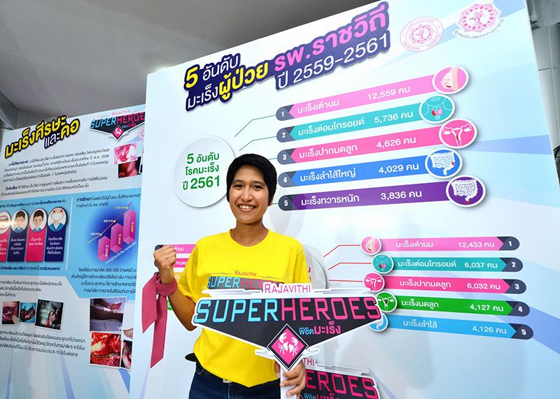 ด้านเซเลบริตี้สาว ตัวแทนผู้หญิงไทยยุคใหม่ ยุ้ย-ณพอาภา เทวกุล ณ อยุธยา ได้ร่วมรณรงค์และเชิญชวนในโครงการ“ทีมราชวิถี ซูเปอร์ฮีโร่ พิชิตมะเร็ง” กล่าวว่าโรคมะเร็ง ถ้าตรวจเจอก่อนตั้งแต่ช่วงแรกๆ ก็ถือว่าดีแล้ว เพราะถ้าตรวจพบเร็ว ยิ่งมีโอกาสรอดสูง และไม่ต้องกลัว เพราะมันสามารถหายได้ ฉะนั้นอยากจะฝากให้ทุกคนหันมาใส่ใจตัวเองดูแลสุขภาพและหมั่นตรวจสุขภาพกันเรื่อยๆ และถ้าใครที่เจอสิ่งที่ผิดปกติก็ควรจะรีบพบคุณหมอเฉพาะทาง