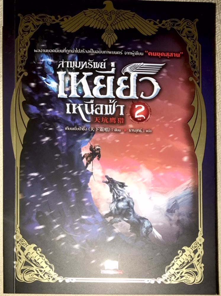 “ล่าขุมทรัพย์เหยี่ยวเหนือฟ้า” จากบทประพันธ์ของ “เทียนเซี่ยป้าชั่ง”แปลเป็นไทยโดย “ธารยุทธ์” ผ่านมาถึงเล่มที่ 2 แล้ว เป็นการผจญภัยของเด็กหนุ่มที่พลัดผลูเข้าไปสู่วังวนของเรื่องราวในยุคราชวงศ์ชิง ด้วยการเข้าไปเกี่ยวข้องกับตำนานเจ้าแห่งทอง หม่าเตี้ยนเฉิน ทำให้เขากลายเป็นตัวละครอีกคนหนึ่งที่ต้องหาทางเอาตัวรอดกับเหตุการณ์ในอดีต นิยายเรื่องนี้นอกจากจะเป็นเรื่องราวของไสยเวทย์ ความลี้ลับ แล้วยังแฝงไปด้วย ภาพของคนจีนในช่วงยุคที่เพิ่งจะปลดแอก และบรรยากาศอันเป็นธรรมชาติของชนบทแห่งหมู่บ้านเหยี่ยวที่เต็มไปด้วยความงามและความอึมครึม ราคาเล่มละ 230 บาท