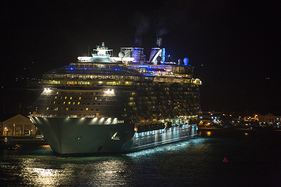 A fellow passenger on the Allure of the Seas ship told CNN he witnessed the risky photo-shoot from his balcony and brought it to the crew’s attention. He documented the transgression in a grainy picture of his own posted online that shows a woman gazing out at the ocean in a blue bathing suit, hands held above her head.