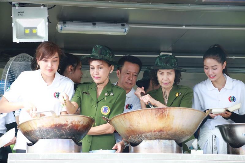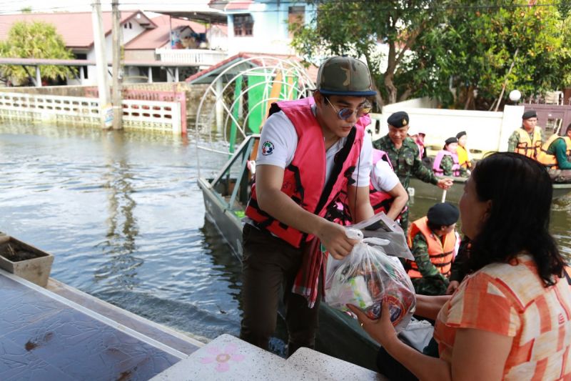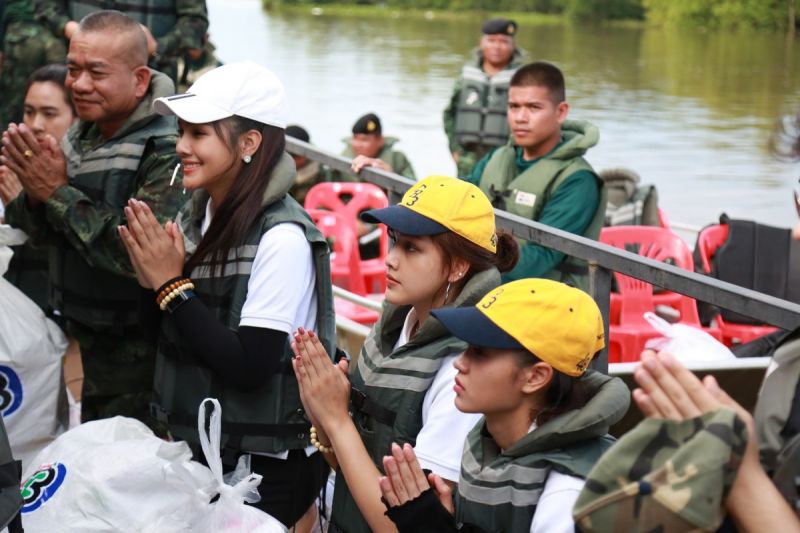 ทั้งนี้ ในการมอบสิ่งของและถุงยางชีพเพื่อช่วยเหลือผู้ประสบอุทกภัยทางสถานีโทรทัศน์ไทยทีวีสีช่อง 3 ได้ร่วมมือกับกองทัพภาคที่ 2 และสายการบินไทย ไลอ้อนแอร์ ที่ช่วยอำนวยความ