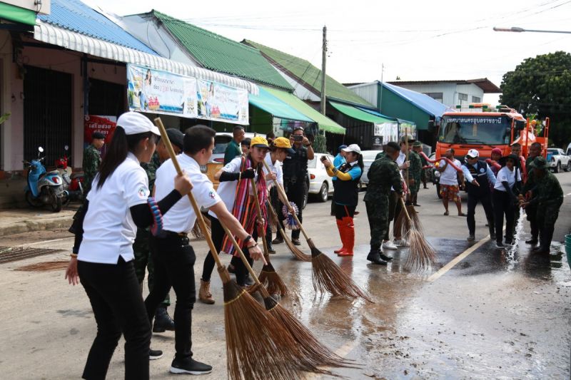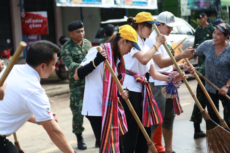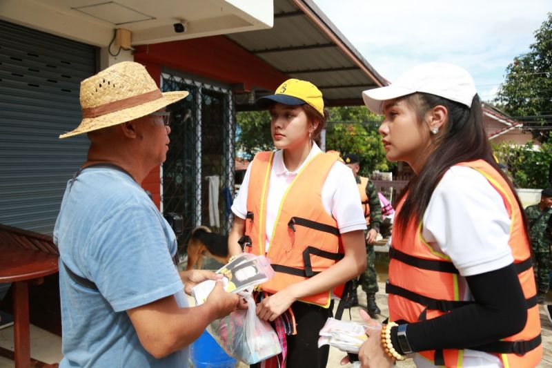 นำโดย ผู้บริหาร “คุณชาคริต ดิเรกวัฒนชัย หัวหน้าคณะผู้บริหารสายงานกิจการองค์กร พร้อมด้วยศิลปินดาราปู ปริศนา กล่ำพินิจ, หมอก้อง สรวิทย์ สุบุญ,โบ๊ท ธารา ทิพา, เกรซนรินทร ชฎาภัทรวรโชติ Miss Thailand World 2019, แผ่นฟิล์ม พมลชนก ดิลกรัชต รองอันดับ 1 MissThailand World 2019 และเนิสดุสิตา ทิพย์โกมุท รองอันดับ 2 Miss Thailand World 2019ลงพื้นที่นำสิ่งของที่ได้รับการบริจาคมาส่งมอบด้วยตัวเอง ณ ศูนย์บรรเทาสาธารณภัยกองทัพภาคที่ 2และร่วมปรุงอาหารเพื่อแจกจ่าย ที่สวนศรีเมือง(โรงครัวพระราชทาน) ออกเดินทางกระจายของไปยังชุมชนต่างๆ ที่ยังมีน้ำท่วมในหลายพื้นที่ อาทิ อำเภอเมือง,อำเภอวารินชำราบ วัดหายโศก และ จุดรับบริจาคช่วยเหลือผู้ประสบภัยศาลากลางบ้านดู่เพื่อแจกจ่ายสิ่งของบรรเทาทุกข์ ทั้งนี้ชาวบ้านยังได้รับการตรวจสุขภาพกับ “หมอก้อง” อีกด้วย ซึ่งในแต่ละจุดที่ออกเดินไปให้กำลังใจ มีชาวบ้านออกมาต้อนรับยินดีและขอบคุณอย่างท่วมท้น
