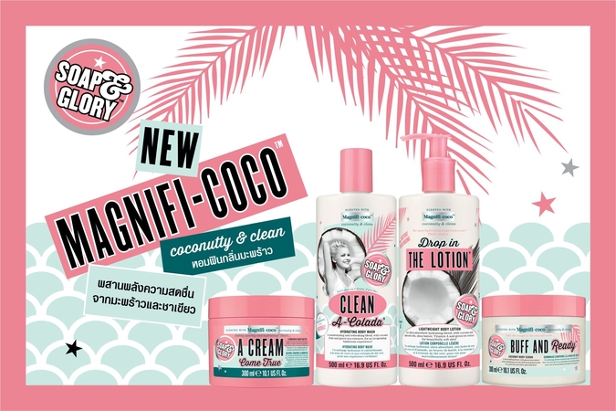 Soap & Glory’s “new range of body stuffs is enriched with natural ingredients such as coconut and green-tea extract to leave your skin feeling smooth and smelling ‘glory-ous’”, the company added.