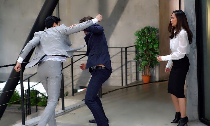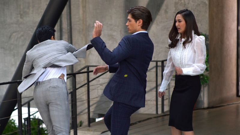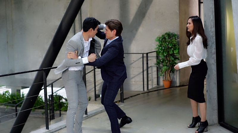 ฉากนี้ถ่ายที่ ออฟฟิศทริปเบิ้ลทู ย่านวัชรพล-สายไหม โดยผู้กำกับ ขอซ้อมคิวบู๊ระหว่าง ณัฐกับนนท์ ก่อน ความสูงคู่นี้ถือว่าสูสี แต่ความแน่นของมวลกล้าม หนุ่มนนท์ฟิตมาอย่างดี ทำเอาณัฐออกตัวเอี๊ยด ให้นนท์ออมแรงบ้าง หลังกะระยะการชก จังหวะหลบกันได้ที่ ถ่ายจริง แซนดี้ยืนหน้าเครียด เพราะนนท์ไม่พยายามเข้าใจ ว่าขอห่างสักพัก นนท์ใช้ลีลากรุ้มกริ่ม เข้ามากอดแซนดี้ อ้อนว่าจะทำตัวให้ดีขึ้น แต่แซนดี้ยืนกรานคำเดิม นนท์เริ่มโมโห กระชากแขนแซนดี้ เค้นความจริงว่าแอบมีคนใหม่ แซนดี้สะบัดหนี แต่นนท์ก็ยิ่งบีบแขนแรงขึ้น ณัฐผ่านมา เห็นแซนดี้ถูกกระชาก เลยเข้าไปห้าม นนท์ลมหึงตีหน้า พาลคิดว่าณัฐเป็นมือที่ 3 ทำแซนดี้ปันใจ เลยเหวี่ยงหมัดใส่ณัฐ 1 ที จังหวะนี้ณัฐผิดคิว ลืมหลบ เลยโดนปลายหมัดเฉียดคางไป 1 ดอก ดีที่นนท์เหวี่ยงไม่แรง ไม่งั้น มีหวังหลับกลางอากาศแน่ (ฮา) ถ่ายต่อ นนท์เปิดหมัดใส่ณัฐอีกครั้ง คราวนี้ณัฐหลบได้ทัน เลยฟาดหมัดคืนเป็นการสั่งสอน แซนดี้เห็นท่าไม่ดี รีบเข้าไปห้าม แต่ทั้งคู่กำลังแรงใส่กัน จะยอมสงบศึกครั้งนี้ง่ายๆ หรือไม่ ติดตามชมฉากนี้ วันจันทร์ที่ 30 กันยายน 2562 เวลา 18.20 น. ทางช่อง 8 กดเลข 27