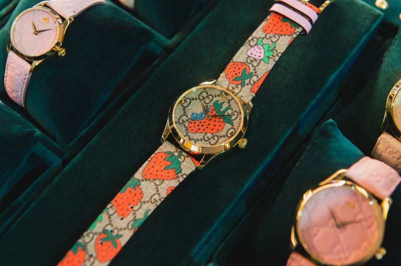 ไฮไลท์อยู่ที่นาฬิกาไฮไลท์ จี-ไทม์เลส(G-Timeless) ที่แฝงด้วยลูกเล่นเต็มไปด้วยเสน่ห์และสีสันแห่งความสนุกสนาน ผลงานสร้างสรรค์ของครีเอทีฟไดเร็กเตอร์คนดัง อเลสซานโดร มิเคเล่ (Alessandro Michele) ที่ได้ฉีกกฎเดิมๆ กับไอเดียที่ไร้ขอบเขต โดยการนำเอาเฮ้าส์โมทีฟซิกเนเจอร์ แพทเทิร์น GG สุดคลาสสิก มาทวิสต์กับแฟชั่นไอคอนล่าสุด Gucci Strawberry ผลไม้ประจำซีซั่นที่ได้รับแรงบันดาลใจจากภาพพิมพ์ลายการ์ตูนสีสันสดใสในยุค 70s ด้วยดีไซน์ร่วมสมัยอันเป็นเอกลักษณ์ของกุชชี่ได้อย่างลงตัว นอกจากนี้ ยังมีจิวเวลรี่ใหม่ล่าสุด ทั้ง Fine Jewelry และ Silver แบบฟูลคอลเลคชั่น นำมาจัดแสดงเพื่อเอาใจสาวแฟชั่นนิสต้าให้ได้สัมผัสก่อนใคร