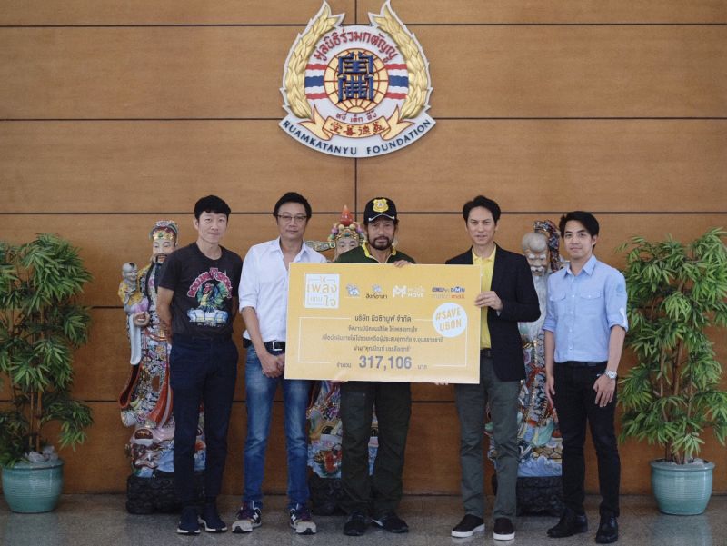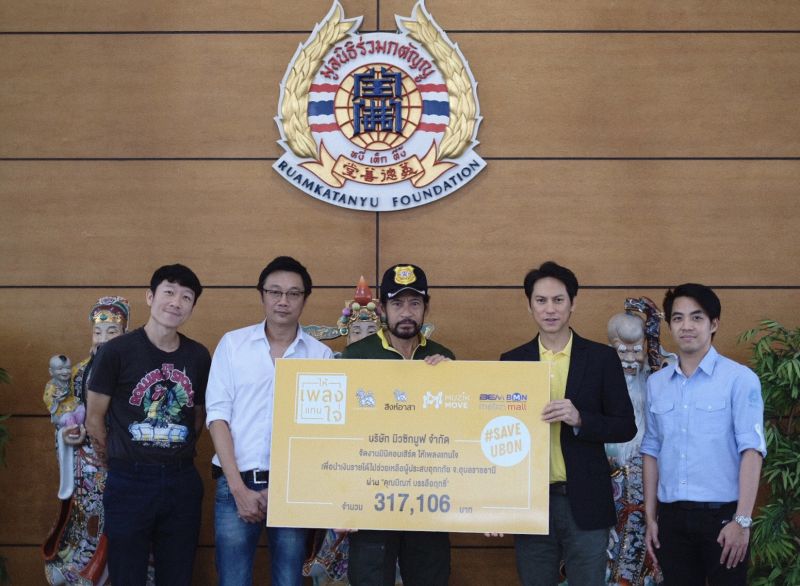 โดยเมื่อเช้าวันนี้ ผู้บริหารบริษัท มิวซิกมูฟ จำกัด นำโดย คุณจุ๊บ – วุฒินันต์ ภิรมย์ภักดี (กรรมการผู้จัดการ), บอม – ดนุภพ กมล (ผู้ช่วยรองกรรมการผู้จัดการ), โอ๊บ – เพิ่มศักดิ์ พิสิษฐ์สังฆการ(ผู้บริหารค่าย Muzik Move Records) และ พล – คชภัค ผลธนโชติ (ผู้บริหารค่าย BOXX Music) ได้มามอบเงิน บริจาคเพื่อช่วยเหลือผู้ประสบอุทกภัยที่จังหวัดอุบลราชธานี โดยมี คุณบิณฑ์ บรรลือฤทธิ์ เป็นผู้รับมอบ ยอดเงินบริจาคทั้งหมด 317,106 บาท (สามแสนหนึ่งหมื่นเจ็ดพันหนึ่งร้อยหกบาท) ที่ได้จากการรับบริจาค แบบไม่หักค่าใช้จ่าย ในกิจกรรมมินิคอนเสิร์ต ‘ให้เพลงแทนใจ’ #saveubon บริเวณ เมโทร มอลล์ สถานีสวนจตุจักร เมื่อวันที่ 20 กันยายน ที่ผ่านมา ณ มูลนิธิร่วมกตัญญู สำนักงานใหญ่บางพลี