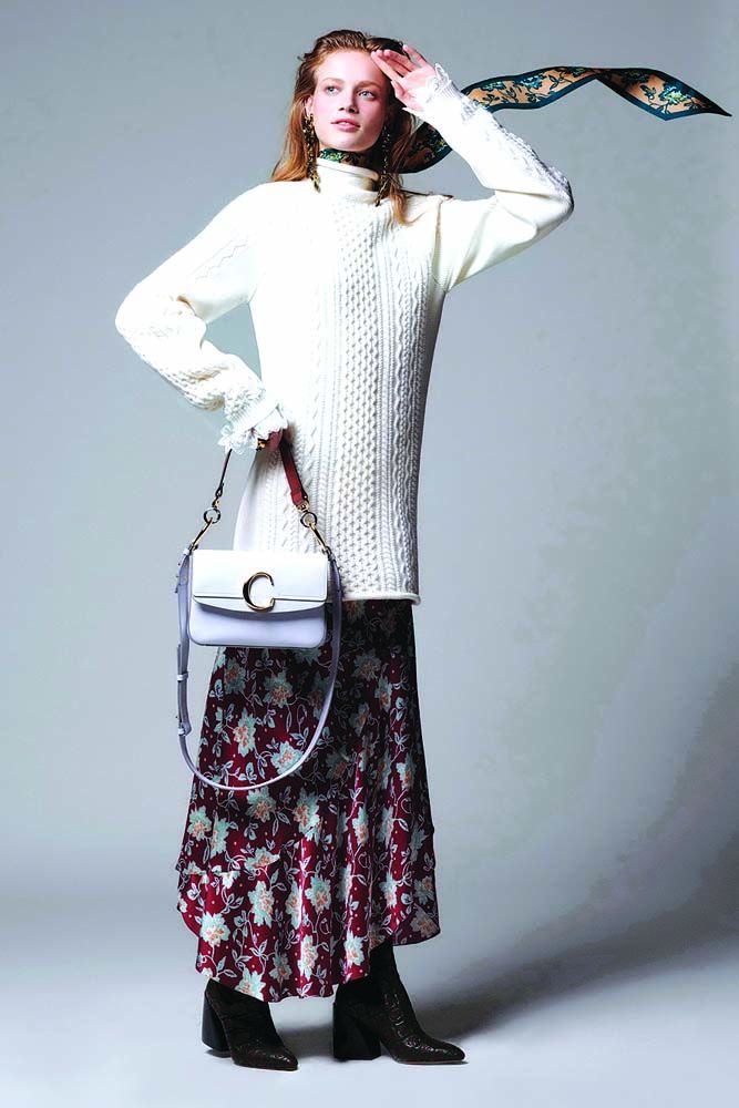 สำหรับ Chloé Fall 2019 Collection(โคลเอ ฟอลล์ 2019 คอลเลคชั่น) และ กระเป๋า Chloé ‘C’ Bag (โคลเอ ซี แบค) ยังคงสะท้อนความเป็นสาวในแบบฉบับสาวโคลเอไว้ทั้งรักอิสระ หรูหรา และอ่อนโยนแบบสาวปารีเซียง ซึ่งเป็นดีเอ็นเอของ Chloé โดย นาตาชา เรมเซย์-เลวี่ (Natacha Ramsay-Levi) ได้ผสมผสานความสง่างามที่ไร้กรอบ ความซุกซน และความหรูหราของสังคมชั้นสูงไว้ด้วยกันโดยคอลเลคชั่นนี้ได้ปรับเปลี่ยนอิทธิพลความเป็นผู้หญิงด้วยแนวคิดที่มากกว่าความสวยงาม นำเสนอผ่านโครงร่างเสื้อผ้าที่ออกนอกกรอบ อาทิ ชุดเดรสสวมใส่ทับกางเกงขายาวและกระโปรง ผ้าที่ถักทออย่างพิถีพิถันผสมผสานกับการตัดเย็บแนวเฉียงเพิ่มความพลิ้วของผ้าไหม เสื้อผ้าแบบเทเลอร์สไตล์ผู้ชายถูกจับให้เข้ากันกับความอ่อนนุ่ม กางเกงเอวสูงปรากฏในรูปทรง A-Line ส่วนชุดเดรสปรากฏในรูปทรงบางเบา บางส่วนใช้เทคนิคการจับพับรวมไว้บริเวณคอและแขนเสื้อแบบผ้าเช็ดหน้า นอกจากนี้ ยังได้นำเสื้อเชิ้ตผ้าไหมที่ใช้ลายดอกไม้โทนสีต่างๆ ประกอบกับรูปทรงของผ้ากันเปื้อน เอกลักษณ์ที่สำคัญของเสื้อเชิ้ตที่ได้ถูกนำเสนอซ้ำๆ อย่างนับไม่ถ้วน ตัดกับคอเสื้อที่เป็นเหมือนผ้าพันคอประดับด้วยระบายลูกไม้และพลีท