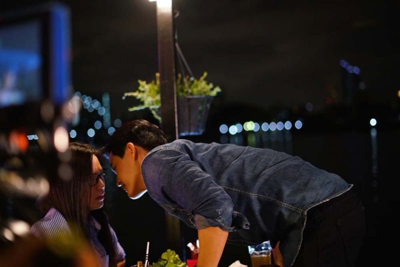 ฉากนี้ผกก. สันต์ ศรีแก้วหล่อ ยกกองไปถ่ายทำฉากนี้กันที่ร้านอาหารริมน้ำ เมื่อทีมงานเนรมิตบรรยากาศแสง สี สวยสมใจแล้ว จึงเรียกตู่และเมย์มาซักซ้อมคิวทันที งานนี้ถือว่าเป็นงานถนัดของหนุ่มตู่ เพราะเป็นหนุ่มอบอุ่น โรแมนติกอยู่แล้ว จึงทำให้การซ้อมฉากนี้ไหลลื่นเป็นพิเศษ เมื่อทุกฝ่ายเข้าใจกันดีแล้ว ผู้กำกับก็สั่งแอ็คชั่นทันที เริ่มที่ ตู่พาเมย์มานั่งทานอาหารในร้านอาหารริมน้ำ แต่จู่ๆ ตู่ก็ขอตัวลุกออกจากโต๊ะเดินไปขึ้นเวที หวังจะทำเซอร์ไพร์สวันเกิดให้กับเมย์ ด้วยการขึ้นไปร้องเพลงบนเวที จากนั้นก็ให้พนักงานยกเค้กมามอบให้กับเมย์ งานนี้ตู่เลยเล่นใหญ่ส่งสายตาหวานซึ้ง พร้อมรอยยิ้มพิฆาตที่ใครเห็นเป็นต้องละลาย ฟากเมย์เจอหนุ่มตู่จีบโต้งๆ แบบนี้ ถึงกับตั้งตัวไม่ทัน ได้แต่แอบยิ้มเขินอาย ตู่กับเมย์นั่งคุยหยอกล้อ พลัดกันป้อนอาหารให้กันอยู่พักใหญ่ ตู่จึงยื่นหน้าเข้ามาใกล้ในจังหวะที่เมย์เผลอ ฟากเมย์ที่ไม่ทันได้ตั้งตัวจึงทำให้หันหน้ามาจุ๊บกันพอดี งานนี้ทำเอาทั้งคู่ต่างคนต่างเขิน ผู้กำกับสั่งเก็บภาพต่ออีกพักใหญ่ เมื่อได้ภาพที่สวย ถูกใจแล้วจึงสั่งคัททันที เอาล่ะซิ…หรือว่างานนี้สาวเมย์จะมีใจให้หนุ่มตู่ซะแล้ว มาตามดูกันต่อได้ใน “ฤกษ์สังหาร” คืนวันอังคารที่ 1 ตุลาคมนี้ เวลา 21.20น. ช่องวัน31