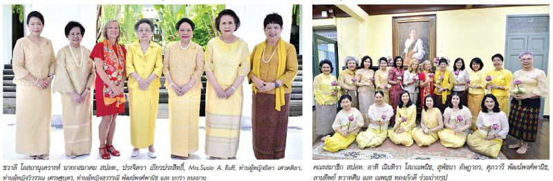 ชวาลี โอสถานุเคราะห์ นายกสมาคม สปอท., ท่านผู้หญิงวิวรรณ วรวรรณ เศรษฐบุตร สมาชิกกิตติมศักดิ์และที่ปรึกษากิตติมศักดิ์, ท่านผู้หญิงธิดา เศวตศิลา นายกกิตติมศักดิ์, ท่านผู้หญิงสุวรรณี พัฒน์พงศ์พานิชนายกกิตติมศักดิ์, ประจิตรา เธียรประสิทธิ์ นายกกิตติมศักดิ์ สปอท., มกรา อนะมาน ภริยาที่ปรึกษารัฐมนตรีว่าการกระทรวงการต่างประเทศ, Mrs.Susie A. Ruff คู่สมรสเอกอัครราชทูตราชอาณาจักรเดนมาร์ก และคณะสมาชิก สปอท. ร่วมถ่ายภาพด้านหน้าพิพิธภัณฑ์อาคารสายสุทธานภดล ตำหนักพระวิมาดาเธอ พระองค์เจ้าสายสวลีภิรมย์ กรมพระสุทธาสินีนาฏ ปิยมหาราชปดิวรัดา