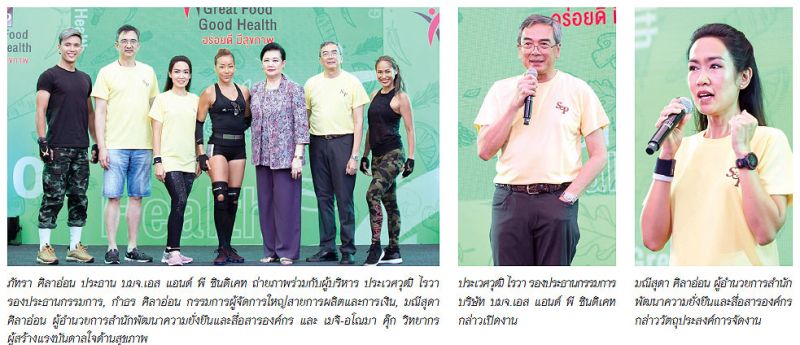 มณีสุดา ศิลาอ่อน ผู้อำนวยการสำนักพัฒนาความยั่งยืนและสื่อสารองค์กร บริษัท เอส แอนด์ พี ซินดิเคท จำกัด (มหาชน) กล่าวว่า “กิจกรรม “S&P Great Food Good Health อร่อยดี มีสุขภาพ”ในปีนี้จัดขึ้นต่อเนื่องเป็นปีที่ 2 เพื่อตอกย้ำคำมั่นสัญญาของบริษัทที่ว่า “Healthier Family, Happier World” กิจกรรมนี้เราตั้งใจจัดขึ้นเพื่อส่งต่อความรู้ด้านการบริโภคอาหารที่ดี มีประโยชน์ รวมทั้งการสร้างสมาธิ เพื่อให้การออกกำลังกายเป็นไปอย่างมีประสิทธิภาพ ซึ่งการปรับเปลี่ยนพฤติกรรมการบริโภคและการออกกำลังกายให้ถูกต้องนั้นถือได้ว่าเป็นการดูแลตัวเองอย่างยั่งยืน และเมื่อเรามีสุขภาพที่ดี เราก็จะพร้อมถ่ายทอดเรื่องราวดีๆ เหล่านี้ไปยังคนที่เรารักต่อไป
