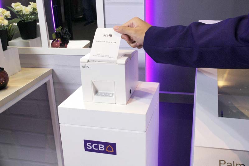 นี่คือนวัตกรรม Fujitsu Palm Secure™ ของ ฟูจิตสึ ที่นำมาใช้ในรูปแบบของการชำระเงินอัตโนมัติด้วยตัวเอง (self-checkout) ในห้างสรรพสินค้า ร้านสะดวกซื้อ