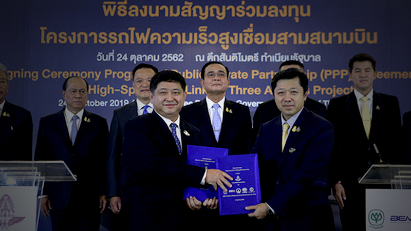 The Charoen Pokphand-led consortium and the State Railway of Thailand last week signed a contract for the development of a high-speed railway linking Don Mueang Airport in Bangkok, Suvarnabhumi in Samut Prakan and U-tapao in Rayong.