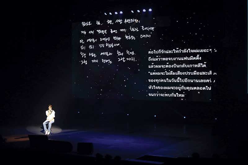 หนุ่ม จาง กี ยง ได้เตรียมเซอร์ไพรส์สุดพิเศษ เป็นจดหมายความในใจที่อยากขอบคุณแฟนคลับทุกๆ คน ที่เฝ้ารอชมผลงานของเขา และแฟนมีตติ้งของเขา ซึ่งเจ้าตัวสัญญาว่าถ้ามีโอกาสจะกลับมาจัดแฟนมีตติ้งอีกแน่นอน และปิดท้ายด้วยบทแพลงประกอบละครที่เจ้าตัวแสดงเป็นพระเอกเรื่องแรกอย่าง ซีรี่ส์เรื่อง Come and Hug Me ที่ส่งผลให้เขาคว้ารางวัลนักแสดงชายหน้าใหม่ยอดเยี่ยมได้สำเร็จ