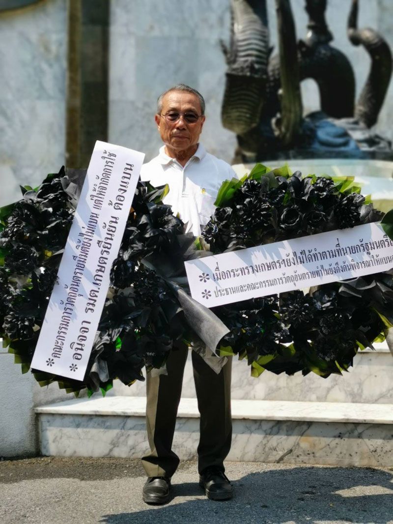 “อดิศักดิ์”บุกวางพวงหรีดหน้าพระพิรุณ ทวงความไม่ยุติธรรมให้เกษตรกร หลังมติแบน3สารเคมี อ้างไม่มีการศึกษารอบด้านตามคำสั่งนายกฯ เตือนระวังอาจกระทบต่อเกษตรกรโดยรวม