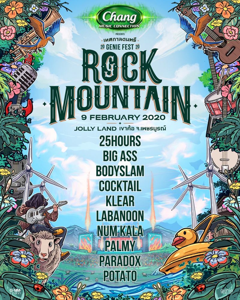 กับครั้งแรกของGENIE FEST 2020 (จีนี่เฟส2020) ตอน Rock Mountain (ร็อกเมาน์เท่น)ที่คอร็อกจะได้มาร่วมสร้างประสบการณ์เดียวกันด้วยโชว์เต็มรูปแบบกว่า11 ชั่วโมงกับ10 ศิลปินร็อกชั้นนำของไทย นำโดย25HOURS / BIG ASS / BODYSLAM / COCKTAIL / KLEAR / LABANOON / NUM KALA / PALMY / PARADOX และ POTATOที่จะมาสร้างประสบการณ์ร็อกในฤดูหนาวครั้งนี้ไปด้วยกันกับคุณ