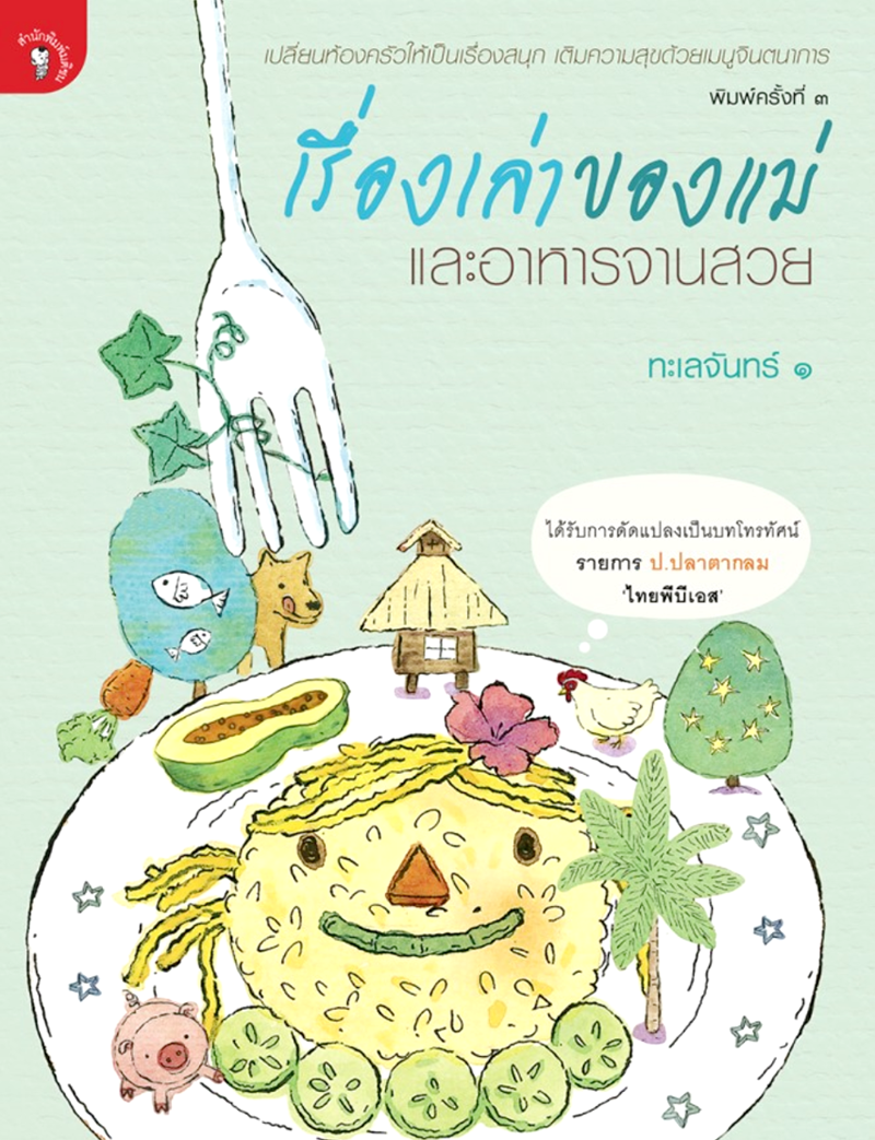 เรื่องเล่าของแม่และอาหารจานสวย / ผู้แต่ง ทะเลจันทร์ 1 เปลี่ยนห้องครัวให้เป็นเรื่องสนุก เติมความสุขด้วยเมนูจินตนาการ “นิม” กับ “นินี” เด็กน้อยวัยซนช่างสังเกต ช่างจดจำ มีโอกาสได้ใกล้ชิดกับธรรมชาติ และเรียนรู้สิ่งต่างๆ อย่างเพลิดเพลิน ผ่านอาหารจานสวยร่ำรวยจินตนาการด้วยฝีมือแม่…ผู้ตั้งใจ ปั้น แต่ง เติม ให้ลูกได้อยู่ในบรรยากาศของความอบอุ่น อ่อนโยน ละมุนละไมเกิดการเรียนรู้โลกและชีวิตอย่างสอดคล้องกับวิถีธรรมชาติ ให้โลกวัยเยาว์ของเด็กๆ เต็มไปด้วยเรื่องสนุก และความสุขที่ไม่มีวันลืมเลือน