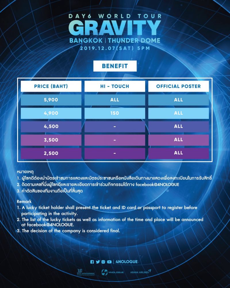 เตรียมเสียงกรี๊ดให้พร้อม 4NOLOGUE(โฟร์โนล็อค)จับมือ JYP Entertainment(เจวายพี เอ็นเตอร์เทนเม้นท์) จัดDAY6 WORLD TOUR ‘GRAVITY’ in BANGKOKเวิลด์ทัวร์ครั้งที่ 2 ของ5 หนุ่ม DAY6 (เดย์ซิกซ์) “ซองจิน-ปาร์ค ซองจิน,เจ-ปาร์ค เจฮยอง,ยองเค-คัง ยองฮยอน,วอนพิล-คิม วอนพิล,โดอุน-ยุน โดอุน” ที่จะจัดขึ้นในวันที่ 7 ธันวาคมนี้ ณ ธันเดอร์โดม เมืองทองธานี
