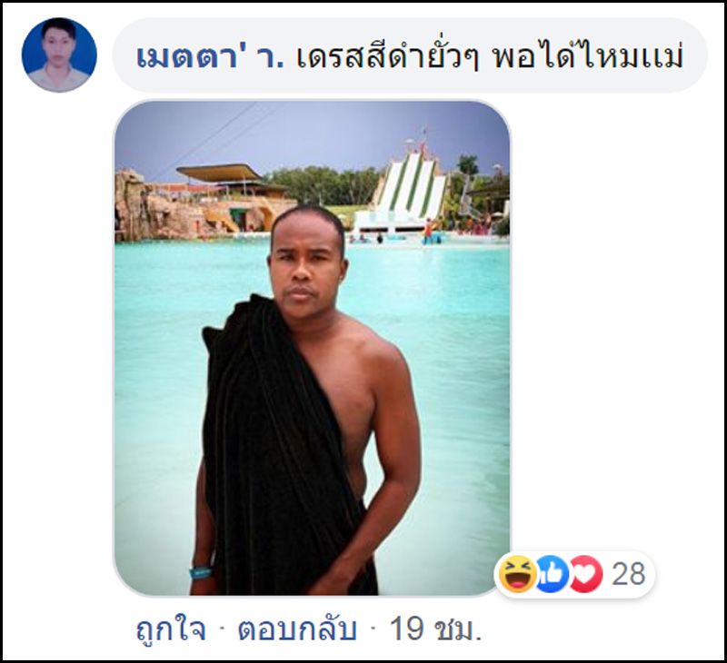 28 ตุลาคม 2562 ฮาลั่นทั้งโซเชียล เพราะ รัศมีแข ฟ้าเกื้อล้น นักแสดงมากความสามารถอารมณ์ดีที่สร้างเสียงหัวเราะให้ได้ชมกันตลอด ล่าสุด เจ้าตัวได้เข้าพักรีสอร์ทแห่งหนึ่ง ในจังหวัดภูเก็ต ซึ่ง รัศมีแขก็ได้โพสต์ภาพแซ่บให้แฟนๆได้ชมกัน แต่ดันมาสดุดที่ภาพที่เจ้าตัวห่มผ้าเช็ดตัวสีส้ม คล้ายกับสีจีวรพระ โดยเจ้าตัวบอกว่า “รบกวนทาง @bluetreephuket ช่วยเปลี่ยนสีผ้าเช็ดตัวด้วยนะครับ..แขไม่สบายใจ..คนไทยมอง” #วิถีคิงคอง ”