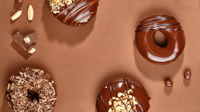 The “Chocomania” collection features the “Choco Kitkat”, a doughnut ring with a smooth butter cheese filling topped with crushed Kit Kat; the “Peanut Buttercream Choco” with a peanut butter filling and a topping of chopped peanuts; the “Choco Hazelnut”, a doughnut with the intense flavour of hazelnut and topped with peanuts; and the “Choco Filled Ring Overload”, a ring doughnut packed with a premium chocolate filling.