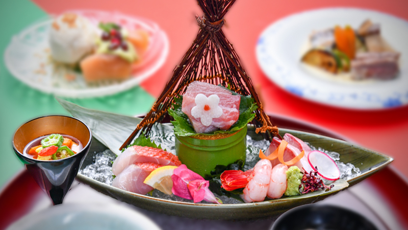 Perfect for family gatherings, business lunches and dinners and seasonal celebrations with colleagues, the Gozen lunch creations of chef Shigeru Hagiwara and his team include a starter of torched scallop and dried fig with shrimp and maitake mushroom, a soup of crab dumpling and shimeji with a hint of yuzu, and a simmered dish of daikon, minced duck ball, spinach, carrot, leek, eringi mushroom and ginger.